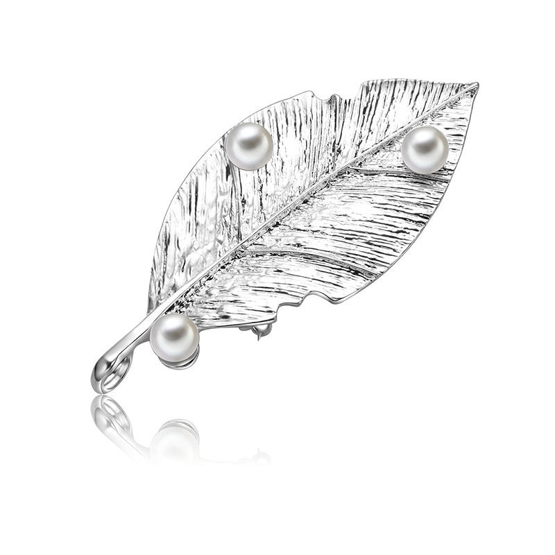 ๐ Silver Leaf Pearl Brooch โ Elegant Nature-Inspired Lapel Pin | Broochiton