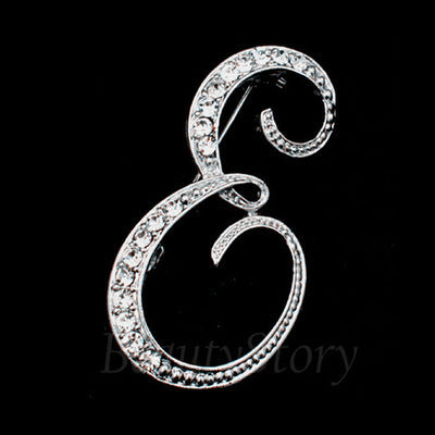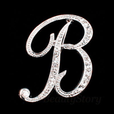 πŸ”  Rhinestone Letter Brooch β€” A–Z Initial Pin (Silver Tone)